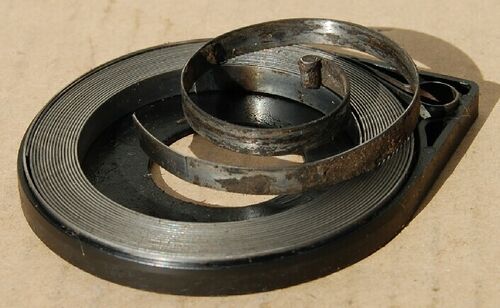 知り合いの山師の仕事仲間が、ゼノアG4501HPのリコイルが壊れたと持ち込んできました。 外して見るとスプリングの破断でした。 外周フック部分の折損は良くありますが、内側の焼き入れ境界付近で切れていました。 原因はグリス切れ、ハウジング内が土…