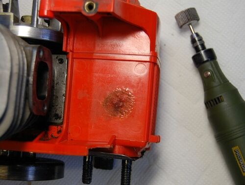 プラリペアによるオイルタンク修復 共立V3500 マフラー廃熱でデコボコに変形したタンクをルーターで研磨.。 プラリペアのクリアを塗布。 汎用のアルミテープを貼って終了。 研磨すればフラットになりますが、マフラーの下なので手抜きです。 現在のとこ…