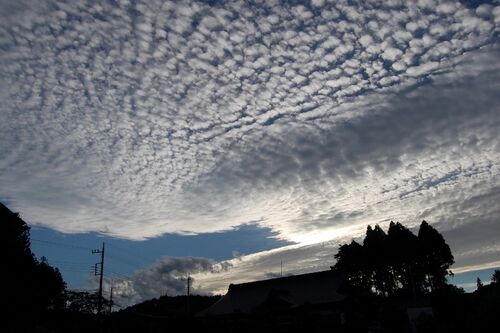 本日、昼過ぎまでは強烈な陽射しと高湿度、風も無く「日本の夏」到来でした。 ところが、午後からの爽やかな北西風が湿気を吹き飛ばし、秋空出現ざんす。 西の空 東の空