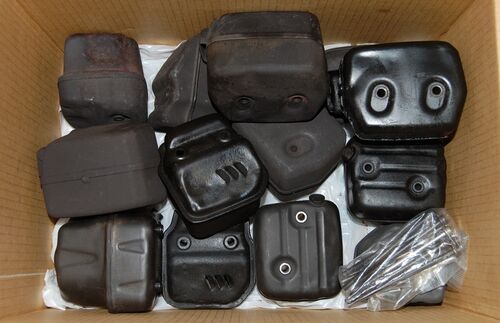 2ストのマフラーはエンジンの一部です。 ボコボコのマフラーは使いたくないので何時の間にか溜まりました。 で、マフラーがボコボコになる原因ですが、 ズバリ!!プルインです。 チェンソーを上から下へ使う時、刃を材に当ててからアクセルを開けると、本…