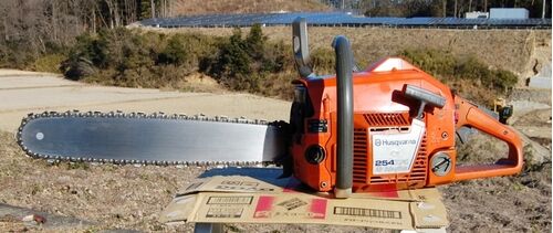 72CL-72角刃20インチをセットして試運転。 始動性・オイル吐出・Gヒーター良好。 ドッドッドッと、2ストバイクのような重低音アイドリング安定。 高速の伸びがイマイチの感じですが、トルクモリモリなんでOK。 80.7cc、オールドハスクなんで現場の酷使に…