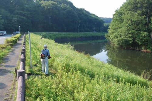 ボランティア作業 7時頃から調整池周辺草刈り。 高温多湿、日本の夏到来ですね、2時間程でバテました。