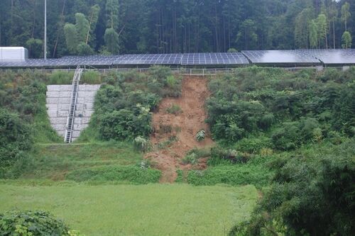 午後の雨で崩落したようです。 左端が落ちると予想していたが外れました。 雨中のシート張り作業。 やはり左側からも漏水が始まりました。 今夜の雨次第ですね。