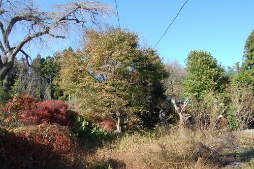 TVケーブルと電話線が厄介なモミジ 納屋横のチャボヒバ?かな ドウダンを潰さずに伐採 ケヤキ3本とクリ、今季中に伐倒予定 木は根元へ近付くと大木!なんでかな?