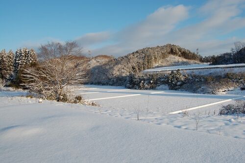 当地では珍しい20cm超の積雪 雪質が軽いので農業用ハウスは無事でした 拙宅前の県道 朝食前に坂路除雪完了