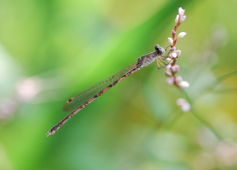 2012-09-29 オツネントンボ(越年トンボ) 近郊散策 #その他趣味 午後、涼しくなってきたので付近を散歩。 道端の草むらに小さなトンボ。 (越冬型) (夏型) 今は混在しているようです。 見上げるとアキアカネ 白いゴミのような点々が全部トンボ、でも良く見えませんね、写真が下手です。 拡大して下さい。 ハナアブかな