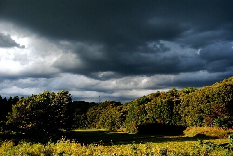 2012-10-03 ただの風景ですが 近郊散策 #その他趣味 何でもない田舎の風景ですが、この方向120km余り先に東電爆発原発があります。 正面の雑木林はキノコの宝庫ですが誰も入りません。 この冬は、シイタケ用の原木伐採を予定していましたが使えません。 山は荒れる一方です。