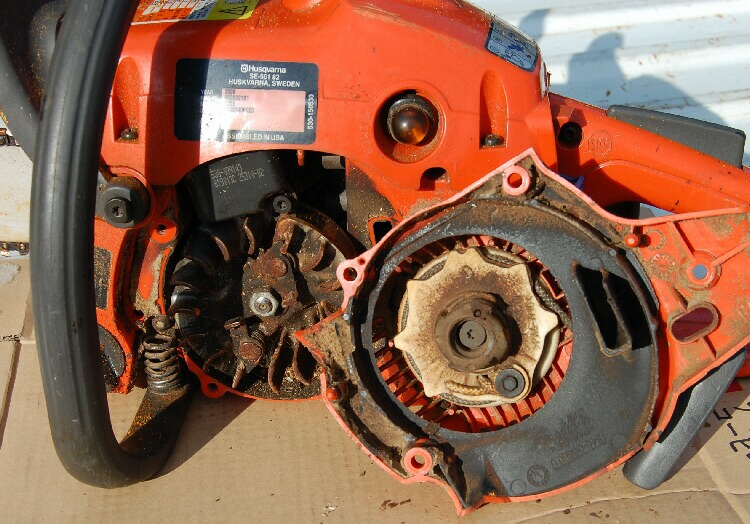 2012-12-26 壊したチェンソー チェンソー等 #その他趣味 壊れたんじゃなくて壊したチェンソー ハスクバーナ235e 要交換部品 ◎アイソレータスプリング破断 ◎ハンドル防振スプリング破断 ◎スリーブ磨耗 日常のメンテを怠った典型的な故障ですね。 汚れを軽く落として、回転部へCRCでも吹いておけば防げたと思います。 部品が届けば修理は簡単ですが掃除が大変で~す。