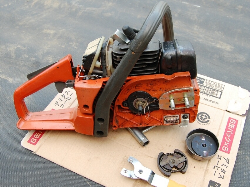 2013-07-16 ヒモ巻き込み チェンソー等 #その他趣味 始動性が悪いと、近所の設備屋が持ってきたハスク136。 キャブキット交換で終了と思ったら、 クランクシャフトにビニールヒモ。 カバーを外すと内側にも入り込んでいました。 オイルシール・ポンププランジャーは無事のようです。 ピストンは無傷ですが、シリンダには分厚いコート。 これではエンジンが熱中症になりますね。